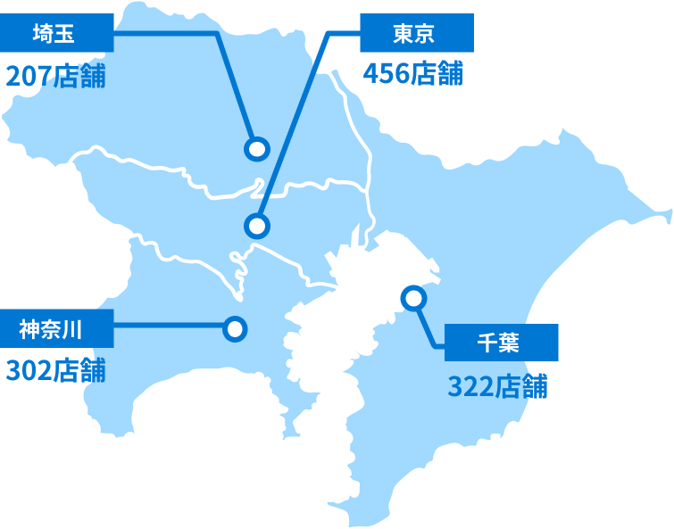 南关东地区的一都三县内,可为您介绍多个品牌的汽车经销店,多达1287家。